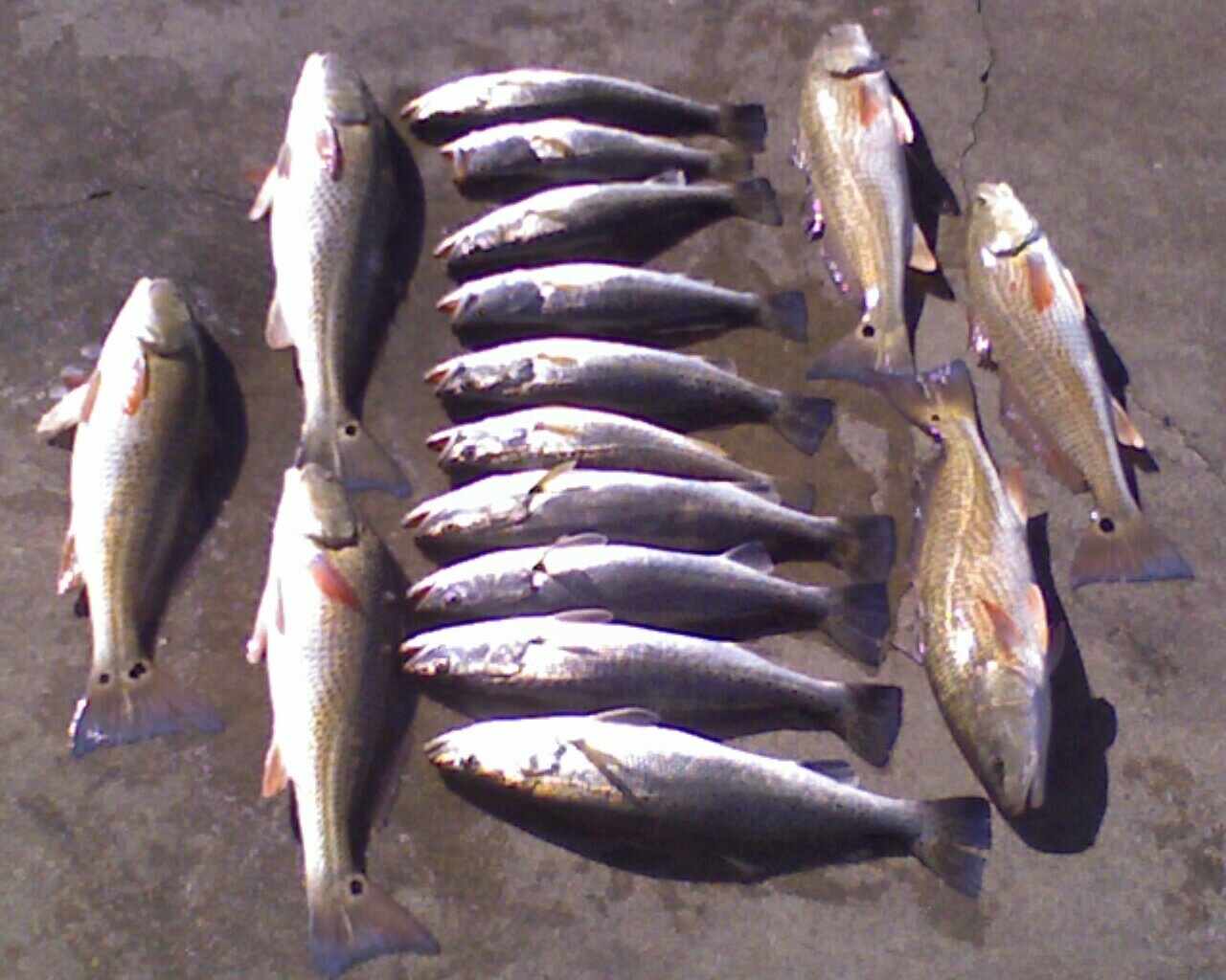Went out this a.m. looking for some nice trout in the deep hole in Moses lake & to stay out of the wind. Well, all we could find in the morning were slot reds & a few fat sandies. Later as the sun came up, we started to pick up our trout. We were throwing Saltwater Assasins in limetrusse on a 3/8 jig head fishing the drop offs of the hole. We later moved to the back of the lake & picked up some more reds we released. We ended up with a total of 10 slot reds,kept 6 ,8 trout, & 2 sandies.