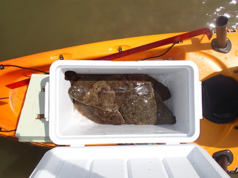 Launched my kayak around 8:00 AM and first tried jigging a H&H chartreuse curly tail grub tipped with Gulp pogy (1/4 oz jighead) around some pier pilings and rip rap. Tide was observed to be high and still incoming. The first few spots didn't produce much of anything except large croaker, so I continued towards the ship channel spoils. Northeast winds made the paddle a little sketchy but I eventually found some protected water. Immediately found some fish along the spoils (< 4 feet of water) and right at the edge of the drop off into the channel. Nothing big, but still solid 17"-19" fish.