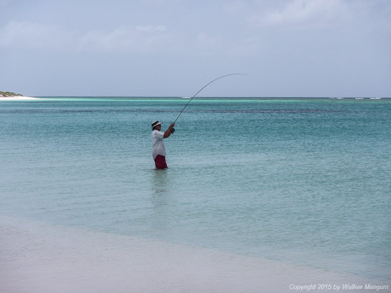We got up this morning and walked the mile or so to where I got into the bonefish yesterday. There they were, and I had probably my best day of bonefishing ever, with no boat involved.