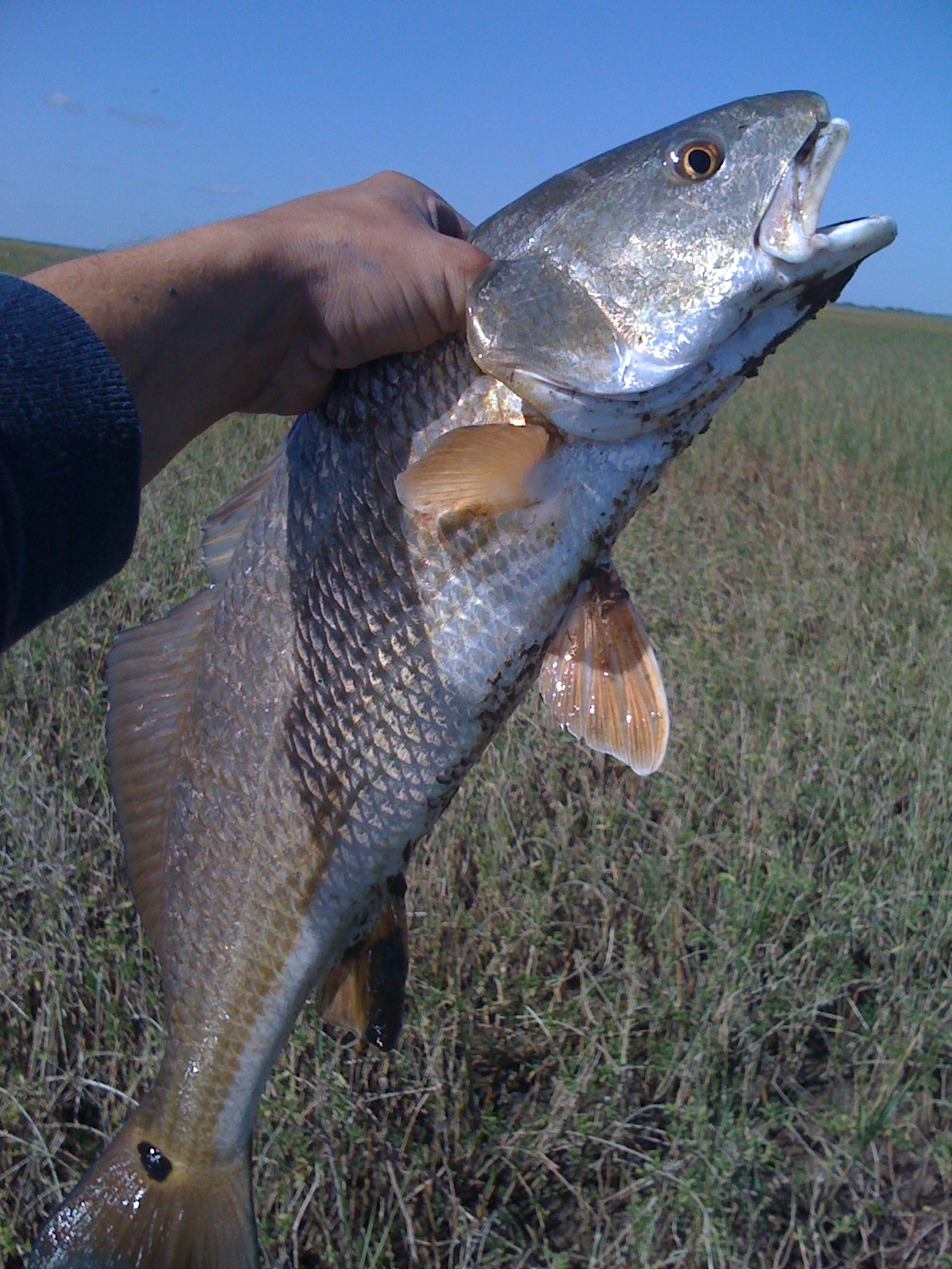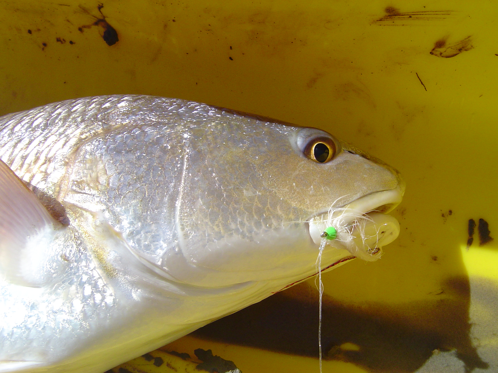 Today in one of the best days I've had with my fly rod in Saltwater. Fished Bastrop Bay and I think I ended up with about 18-20 reds! I lost count after a while. All fish were 18"-25". Fished the bay first and landed a few fish that were cruising shell and grass pads. Then ventured into a bayou got out of the kayak and stood out on a sand/mud flat and landed 3 more from the same spot. I had sunk to my knees in mud so I moved one catching a few more cruising the edge of the bayou. Then I rounded a corner and came across a school of a 100 or so reds. I let them pass since the bayou was very narrow and then caught 2 more off the back end of that school. They remained together and not really moving very fast so I parked the kayak and chased the school down the bank. I picked them off from behind steering the caught fish away from the main school. Ended up with 8 more or so from that school before I got tired of chasing them. At one point I tied on an additional fly 2 feet down from the first to try and get a double hook-up. I didn't happen, the first caught fish would inevitably yank the second fly away from the other chasing red....maybe next time. Continuing down the bayou I caught a few more and then decided to leave catching a few more at the mouth of that bayou on the way out. On the way home I caught a few more cruising the grass flats. I was blessed with an awesome day to say the least.