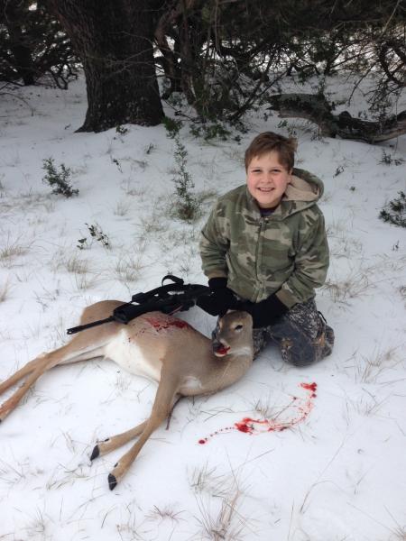 My youngest grandson bagged his 1st deer outa Talpa yesterday evening. Clean shot and kill and in the snow!!