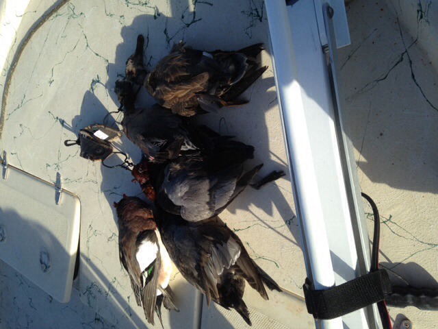 Went out this am to a south side cove. Started coming in early. Shot the widgeons first then the mottled duck (at least I think it is a mottled...could be a black or something else...any help) and the redheads started moving and must be a million of them out there. Finished shooting by 8:20 back in Sea Isle by 9:00. Click image for larger version