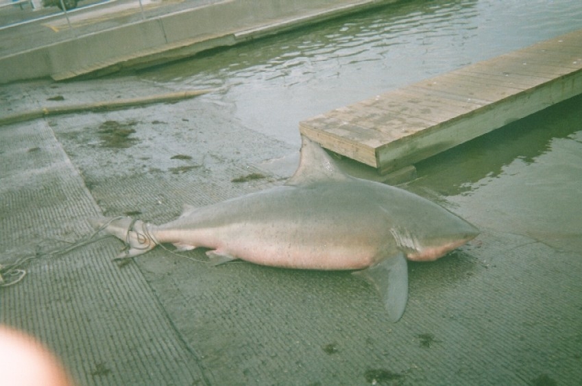 Those big wakes I saw last week at GISP are most definitely sharks. They have to be... I think they are bulls. Read somewhere that they are territorial and makes sense because they weren't there two weeks ago and ever since they showed up, I see em every day tearin' and rollin the $..t out of big ars trout. Its time to but out the steel leader....
