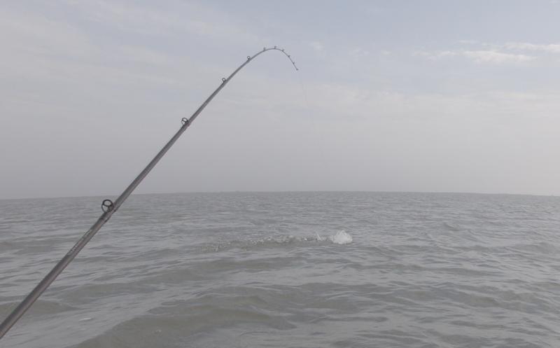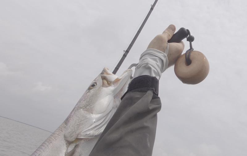 I was working the bait in anywhere from thigh deep water to almost chest deep. I've found that fishing this area with the bait is best with a slow retrieve much like fishing a plastic worm for bass. But the fish were nailing it. I start with a slow pull with the rod and then at the top I add a couple twitches to make it walk then reel up the slack and repeat over and over. The fish were hitting it on the slow pull mostly and that was great because I could really feel them thump it hard.. I have video of several of the strikes and if I can get to it I'll slow down the speed of the clip to slow mo and you can literally see the rod vibrate with the thump. Very solid hits. The key with this bait, and all weedless rigged baits, is to not set immediately but instead reel down the line while pointing the rod at the fish, do this to take up slack out of the line, but don't let the fish feel the pressure.. you don't have to take up a lot of line.. just a couple of turns of the reel, then set the hook hard. As a note, I start with a tighter drag .. almost to where a 5lb trout could barely pull the line out if I couldn't back the drag off in time. With the drag tight and the slack out I set the hook sharply with some power. I've only very rarely had a 'skin tear-out' with a trout as the swimbait style hooks are setting mostly into bone and cartilage and not right beneath the skin. As soon as I set the hook I back off the drag. With this method my hook up ratio is in the 90%.. probably a little higher with redfish. This is the same hook up ratio I have with jig heads and topwaters. It works. Bone Diamond and Pink did the best. I did catch some on Chicken on a chain on Saturday .. half dozen fish on saturday on it as well.